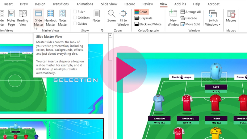 The template features a 3D interactive football pitch that enables you to create dynamic animations and smooth transitions.